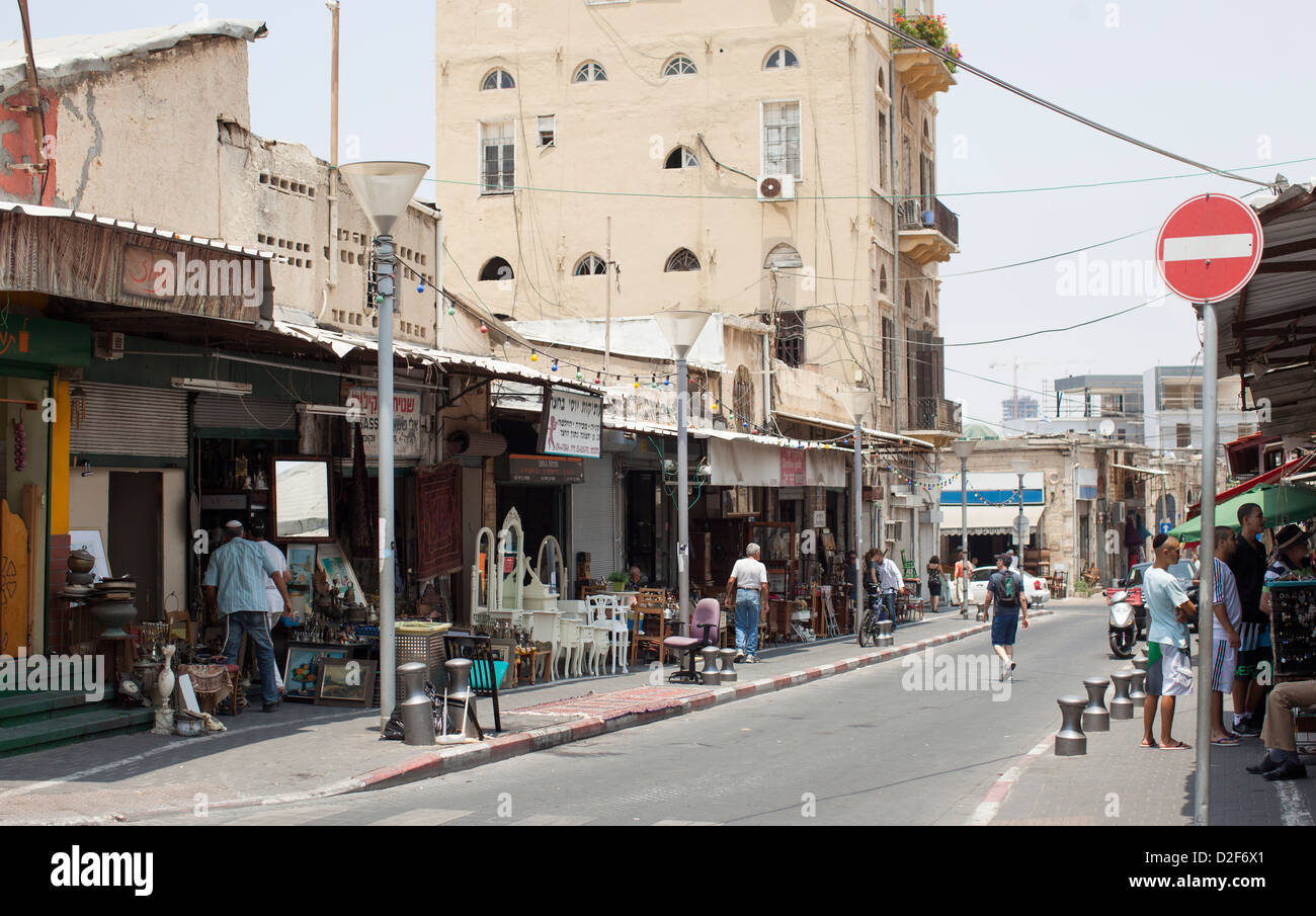 External street view of local shops in Jaffa near Tel Aviv, Israel